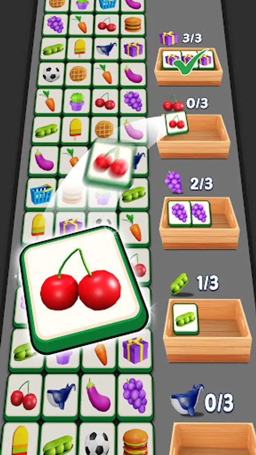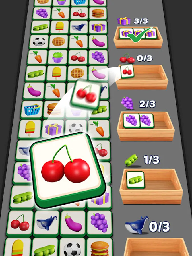 ◈ Just tap to place the 3D tiles into the box. Three same tiles will be collected. Collect all the tiles as fast as possible.