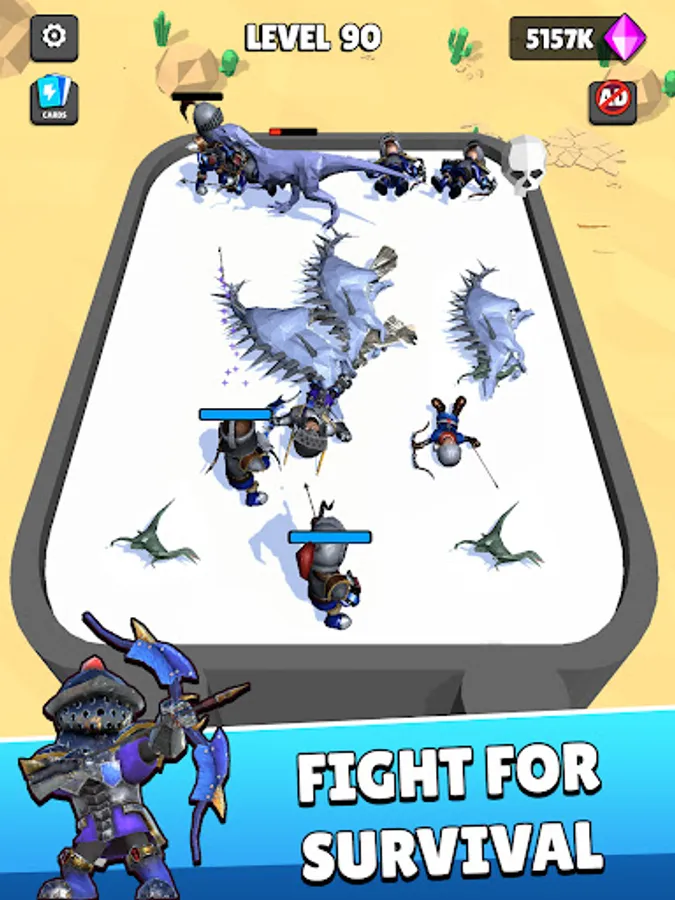 Hey brave Strategist, it's been a long time since we tamed the wild, cruel dinosaurs and won the Great merge battle war. But now, our enemy - the devil army of thousands of evil Archers, Wizards, Necromancers, and hundreds of troops of Dinosaurs including Carnotaurus, Tyrannosaurus Rex or T-Rex, Quetzalcoatlus are attacking us. World peace is risked.