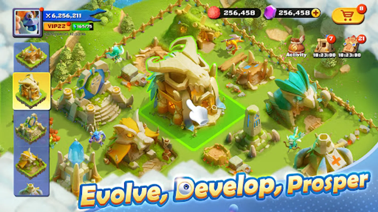 Craft customizable buildings for your tribe as they expand from a tiny peaceful town to a bustling metropolis, and eventually…reach for the stars!