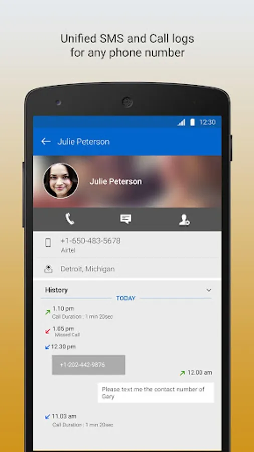 It shows geographic location details like city, state, country & telecom operator of incoming calls, mobile contacts or any mobile number.
