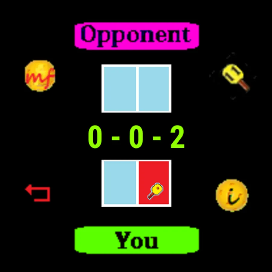 3. The info "i" icon now displays "wins-losses", "my-tot faults", "play-time", and "session-time"; based on sequential touches of the "i" icon. Play time is now the actual time of play, excluding the time between games. Session time is the total elapsed time since starting the app. A long touch of the "i" icon always displays the time of day.
