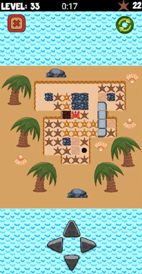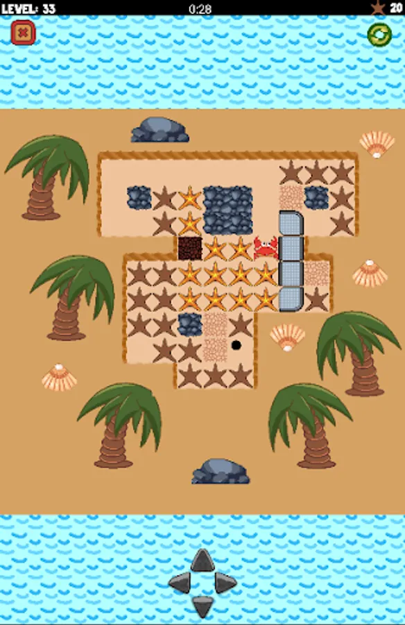 solve all levels with "Crabbie". In the levels you either have to collect all the shells or place all the starfish in order to reach the goal.