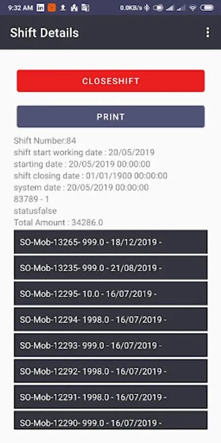 Printing customer receipts and shift closing statements compatible with devices SUNMI V1, V2