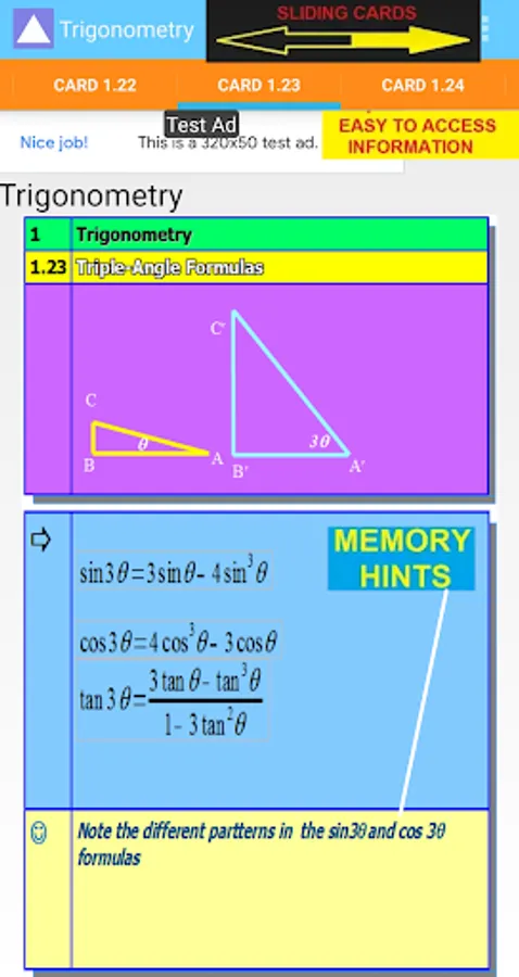 - TRIGONOMETRY MEMORY CARD approach for the easy of remembering TRIGONOMETRY FORMULAS