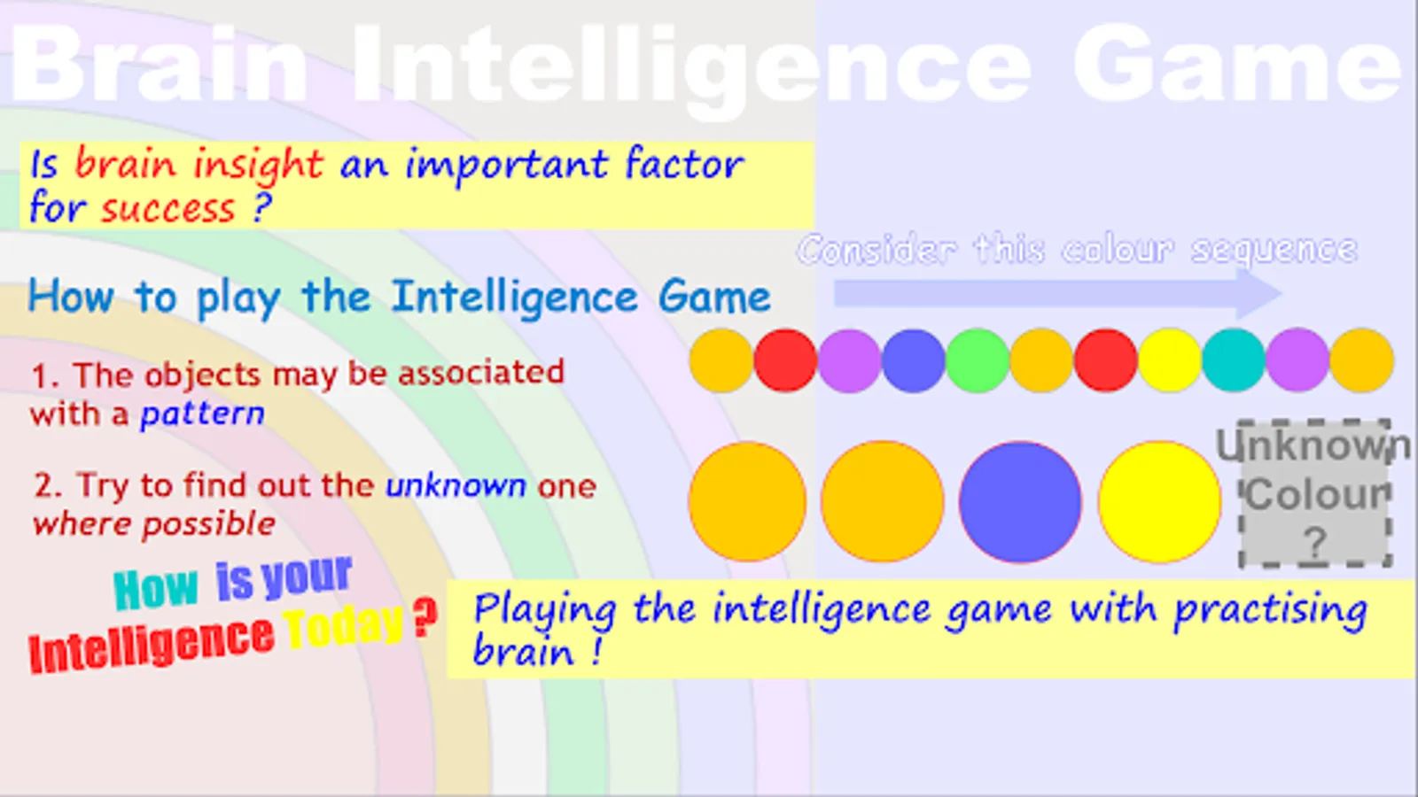 - practice on formulation of mental insight of the next colour using mental agility in the mental health or intelligence app