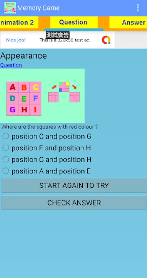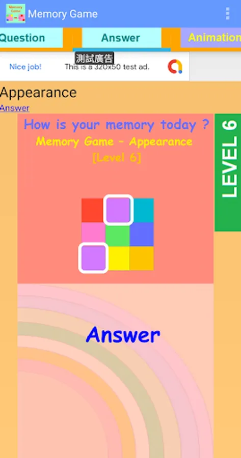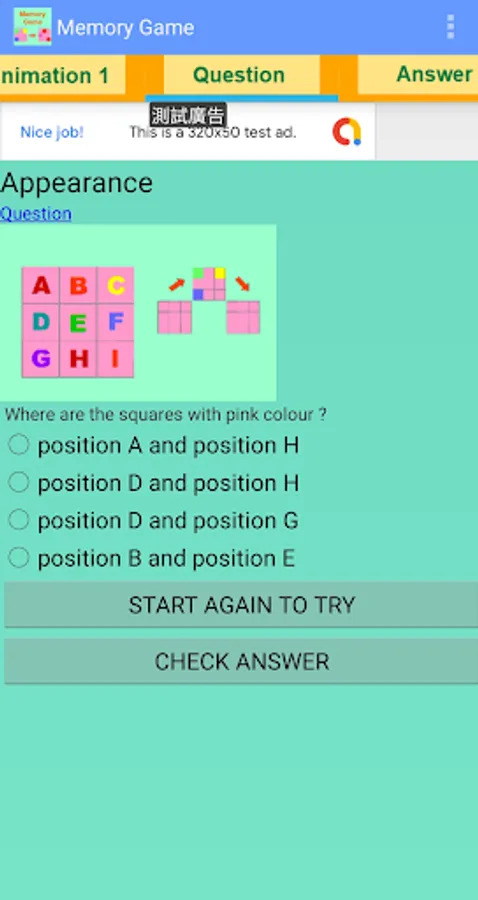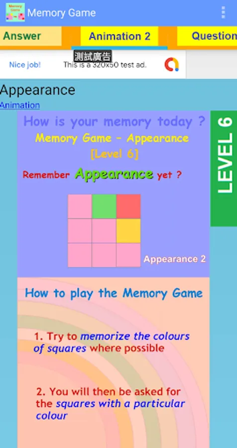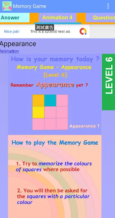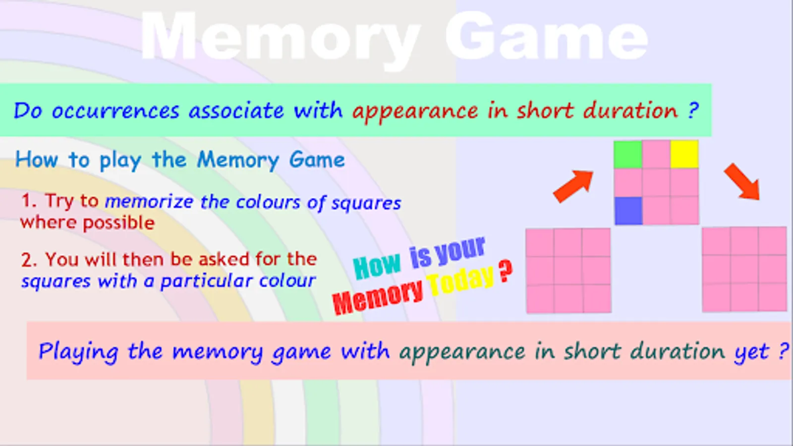 the question in this memory game can be used as a memory quiz and it can be considered as a TEST OF YOUR MEMORY in the Memory Game