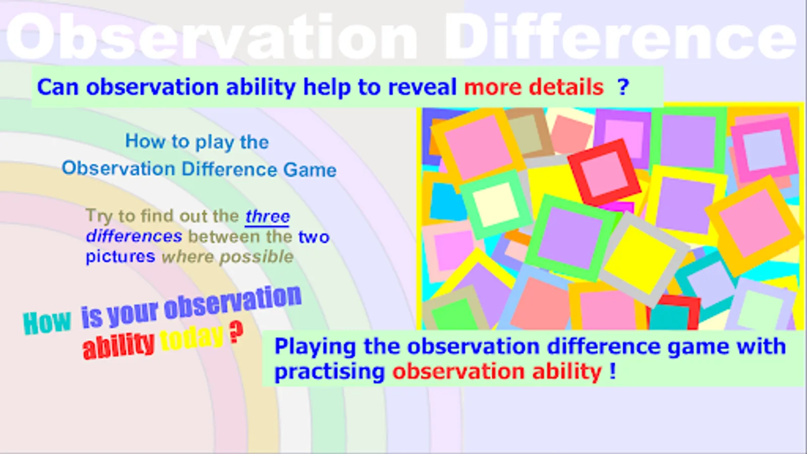 If this app can be kept in mobile or tablet, it may be helpful for practising OBSERVATION at convenient time and place where appropriately