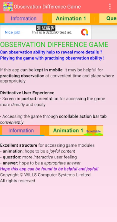 - Accessing the observation difference game through scrollable action bar tab conveniently