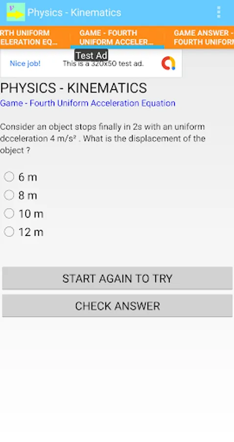 After practising with the Physics game, answer can also be checked in the Physics apps. It can also acts as Physics examples by reading the questions and answers in the apps