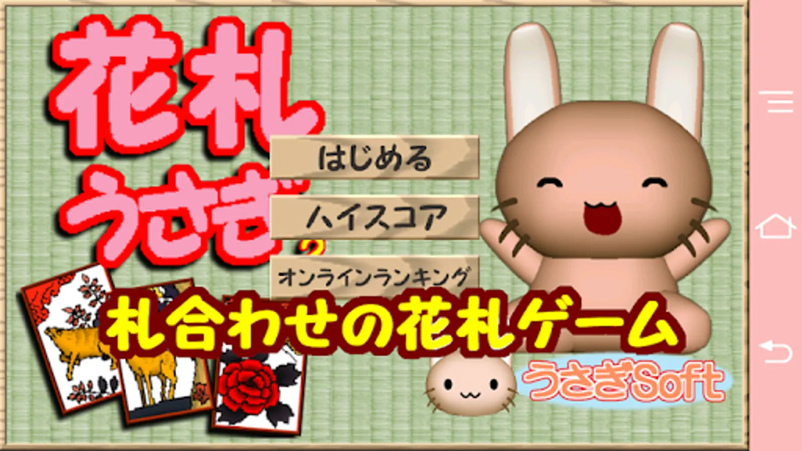 It is playing cards tags alignment. It is an 8-round game of the rabbit's a one-to-one. Online ranking correspondence. It is a horizontal screen game of simple operation. Description screen immediately after the play, will not be displayed with the terminal in the score is registered 5 or more. Role is Gohikari, the four-light, rain four light, Sanko, Akatan, blue short, Inoshikacho, Table Sugawara, Matsukiri shaved, only, cherry blossoms, moon, strip, seeds, wisteria island, paulownia island, rain island , 18 kinds of dregs. Strip until the carpet, seeds nine seeds, the dregs will count up to 24 dregs.