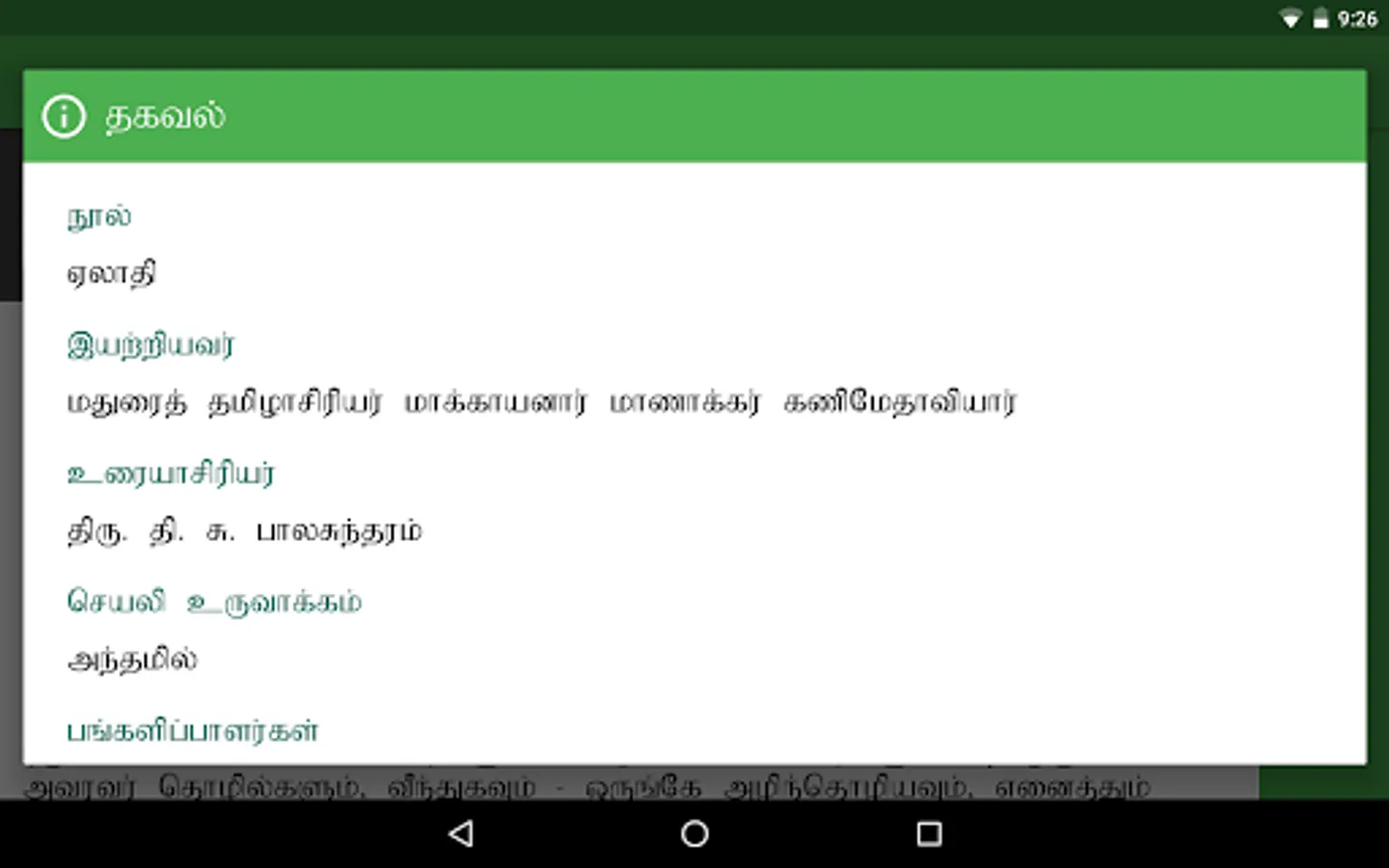1. Mr. Kanimaedhaaviyaar (திரு. கணிமேதாவியார்) - For writing this extraordinary book.