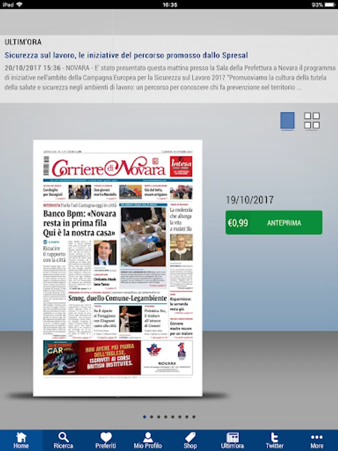 You can see the first page for free or purchase the full edition. Flipping through the pages of the newspaper, magnifying the contents, turning the device, you will be free to read in comfort and in the preferred mode.