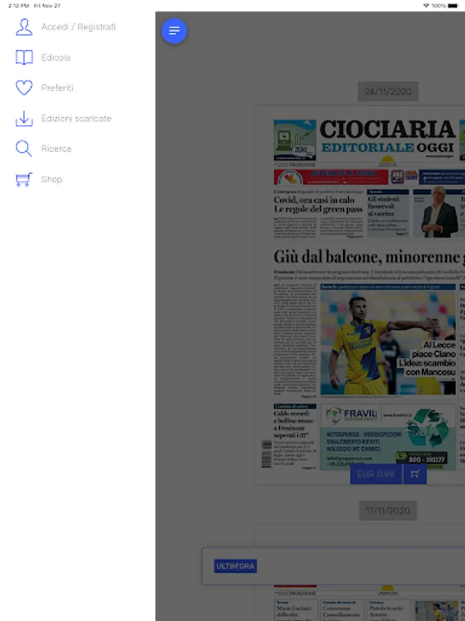 You can choose the edition of the day, or an edition of the archive, and seek for free. Leafing through the pages of the newspaper, magnifying the contents, turning the device, you will be free to read in comfort and in the preferred mode.