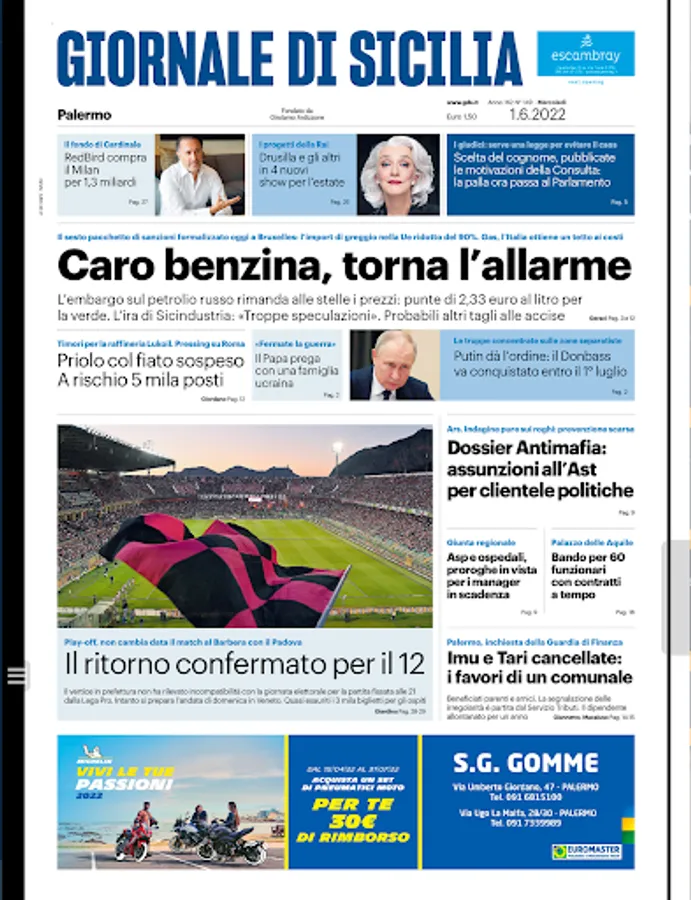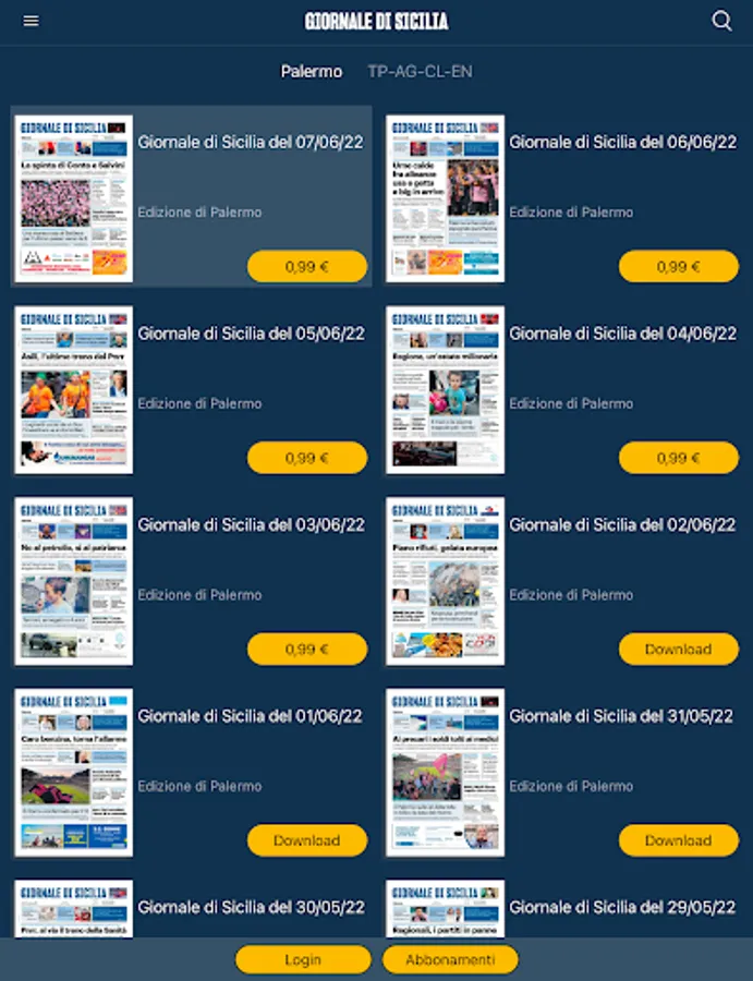 You can choose between the local editions: Palermo, Agrigento, Messina-Catania, Siracusa-Ragusa, Caltanissetta-Enna, Trapani.