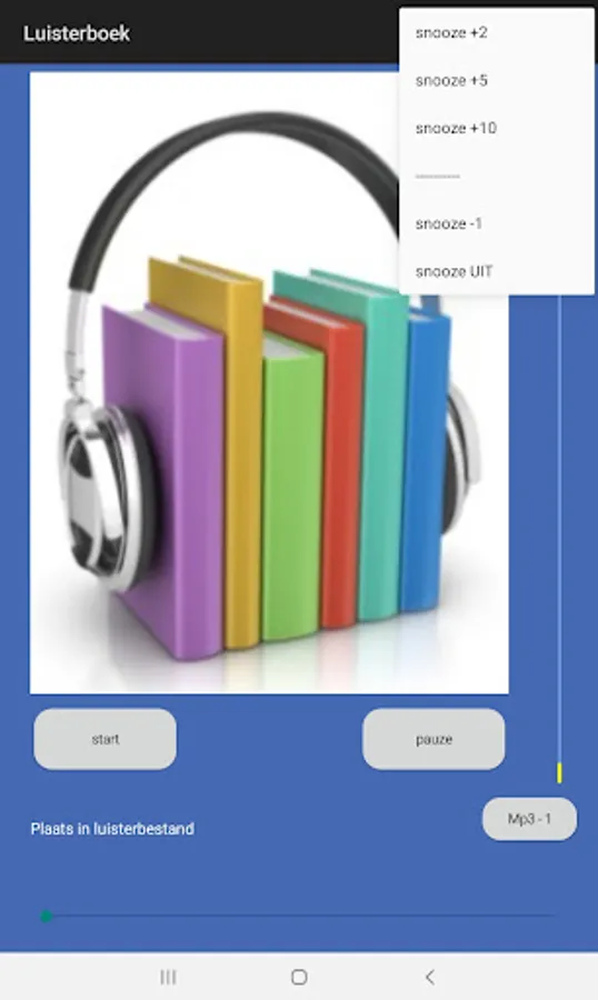 This app contains NO content. You have to add the audiobooks (maximum 9 at the same time) in the form of MP3 files in the correct folder on your phone or tablet. You may have downloaded the audiobook in MP3 files or received it from others. You can also rip an audiobook CD to MP3s to listen to on your phone or tablet. The app has a snooze function especially for listeners who like to fall asleep with an audiobook.