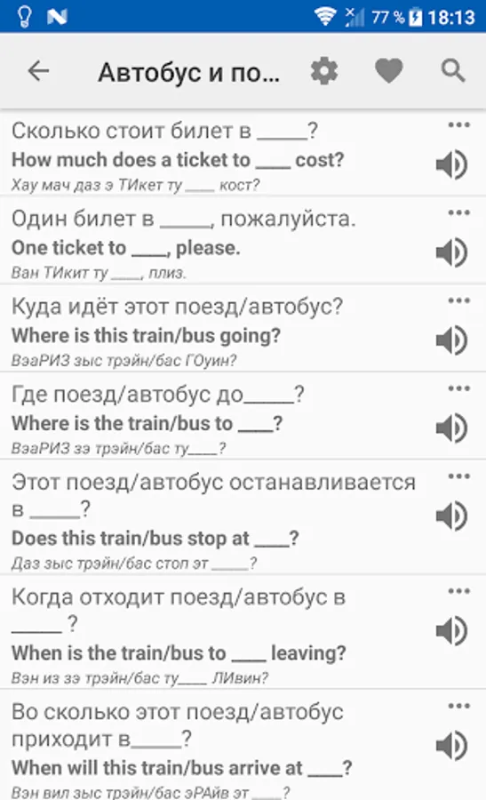 Phrase phrases are sorted by category (life situations), which makes it easy to navigate the tourist trips. Sound English expressions are using a standard TTS (if installed). Learn basic English phrases needed for travel. Take a phrase book with you and be confident in any situation.
