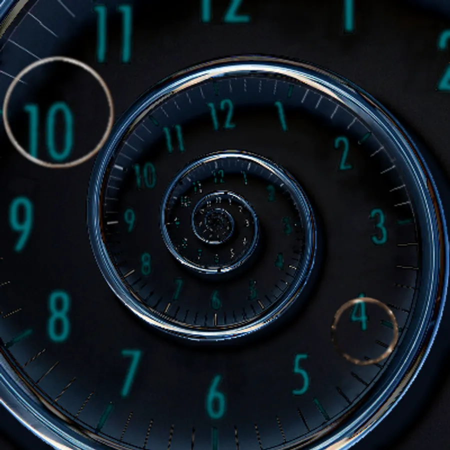 Droste effect with second hand spiraling out from center.