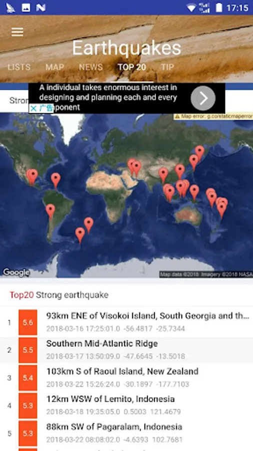 - Top 20 big Latest quakes in the World and data stats