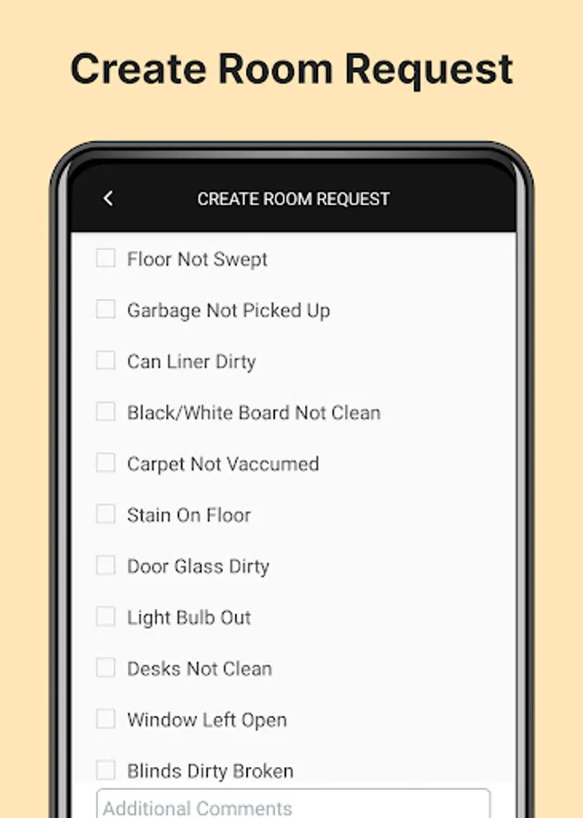 Teachers can submit requests via the mobile app or website if a floor is unswept or sticky, if desks are dirty, or if there's a burnt-out light bulb in a classroom.