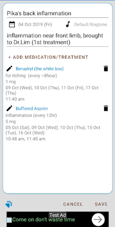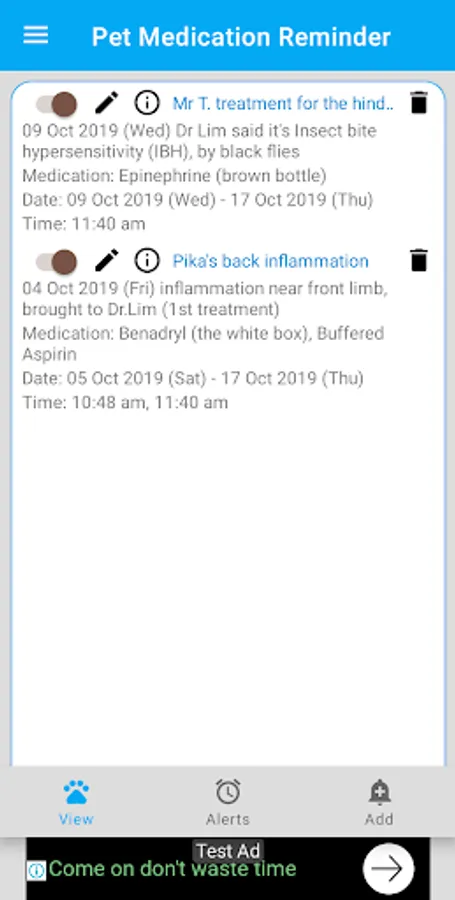 This app allows you to set the alarm to remind you to feed medication to your pets.