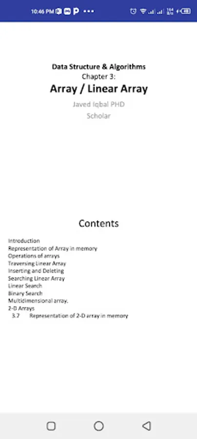 Android app for Data Structures & Algorithms Notes developed by Javed Iqbal as a study guide for the students of different fields like Information Technology , Computer Science, Computer System Engineering and other programming related fields. Data Structures & Algorithms Notes App contains PDF notes about Data Structures & Algorithms.
