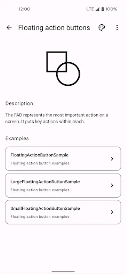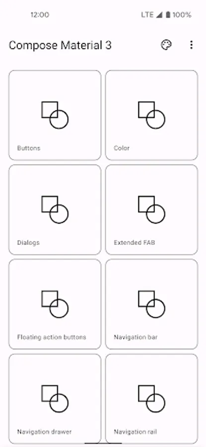 A canonical reference of Material Design components, theming, dark theme, and how to implement these features in Jetpack Compose: the Compose Material Catalog. The catalog consists of three main screens: the home screen, the component screen, and the example screen. At any point you can launch the theme picker or “more” menu from the top app bar. The app also supports dark theme.