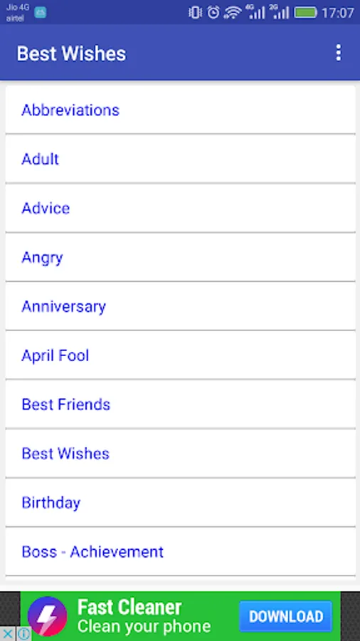 150+ categories (Friendship SMS, Love SMS, Birthday SMS etc.)