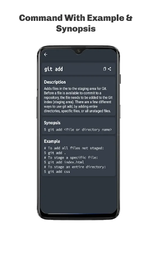 A one and only unique app with Git Examples and Synopsis with Git Commands Description in one place with simplicity!