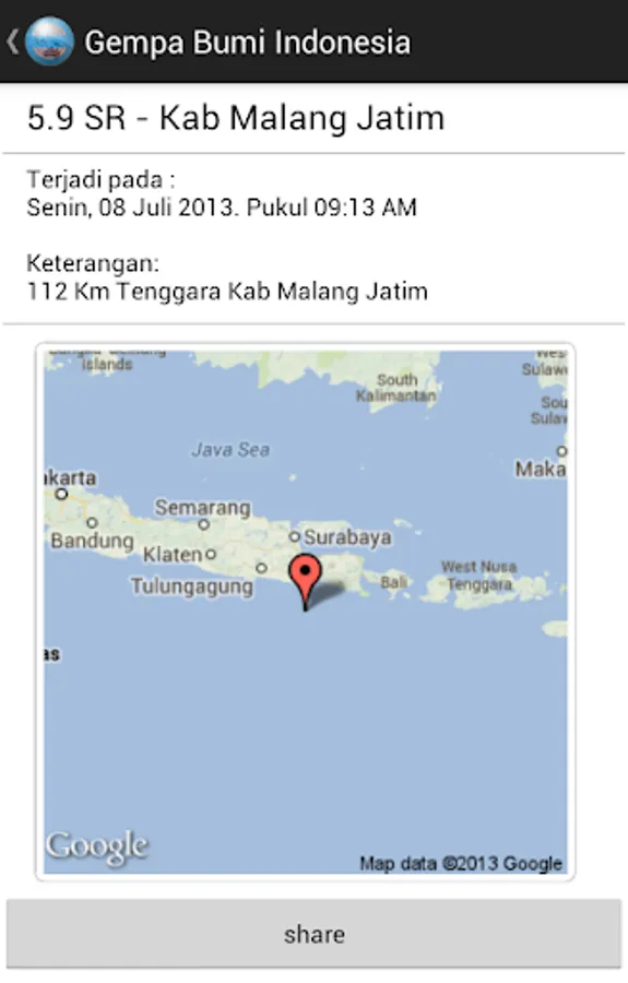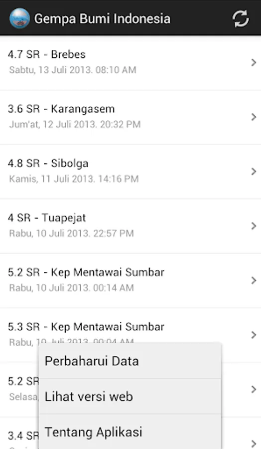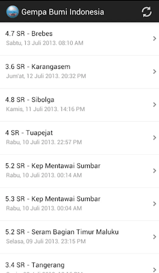 Applications that are intended for the general public as an alternative to obtain the information of the earthquake that occurred in parts of Indonesia. With this application you can view the latest earthquake data that is felt in the Indonesian region. This application aims to help disseminate information to the earthquake in Indonesia Society. With the developers hope it can help remind people of Indonesia will alert Earthquake disaster.