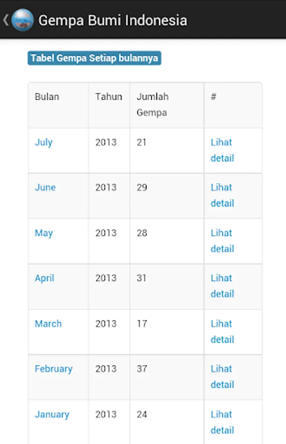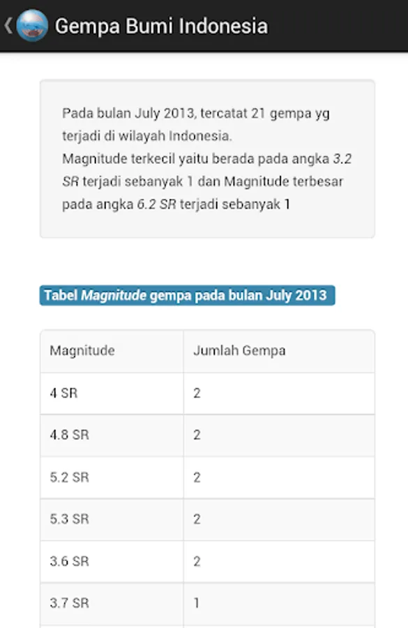 In this application you can see a list of earthquakes are statistically per month on the mobile version of the website.