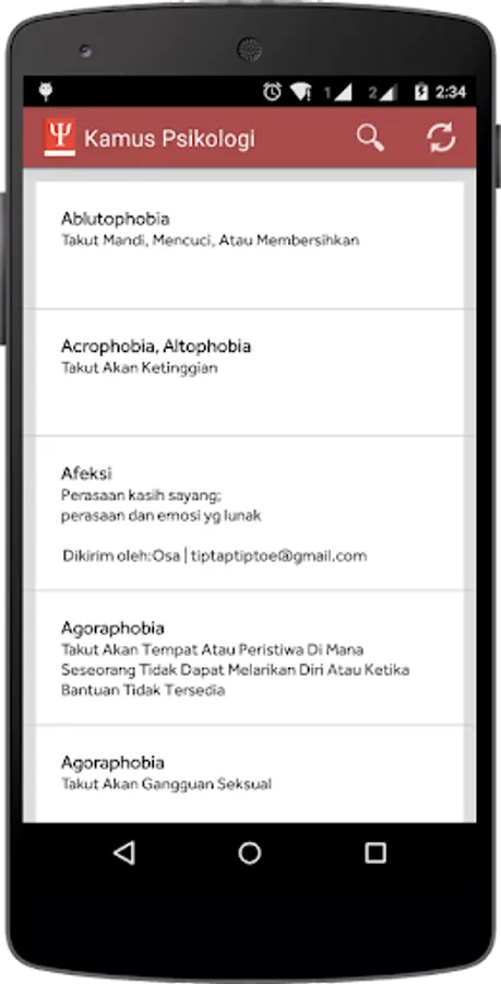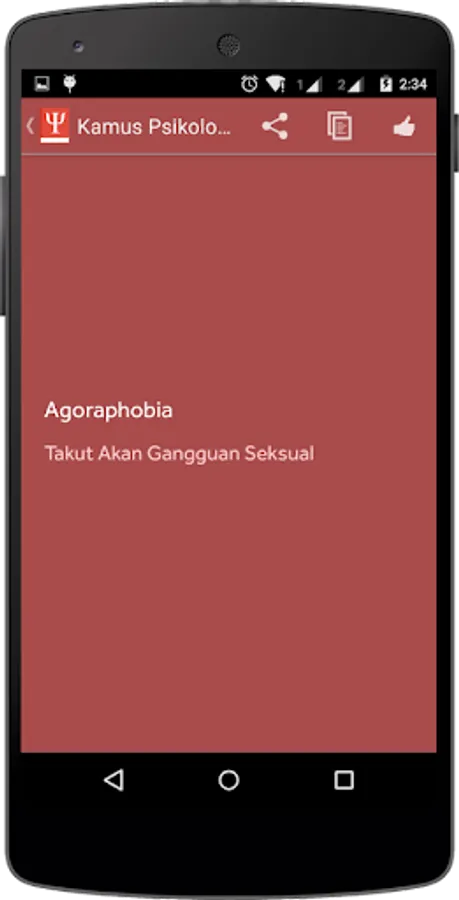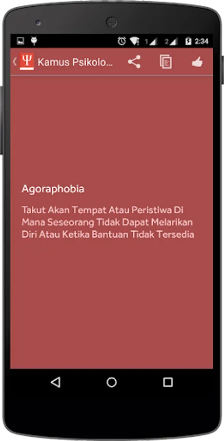 This application is a dictionary of Psychology Indonesia. Contains term psychological terms, such as phobias and various types of terms in the world of psychology.