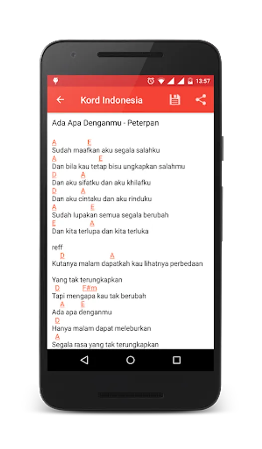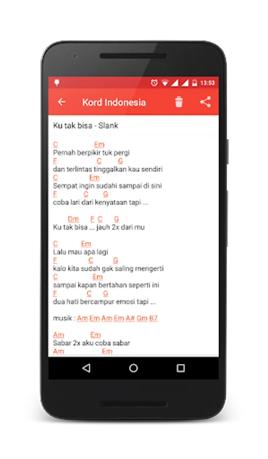 Chord Guitar Indonesia is a collection of applications song / music of Indonesia. More than 4000 guitar chords and lyrics in this application. Slank Padi Gigi Noah d'Masiv Sheila on 7 and many more bro ..