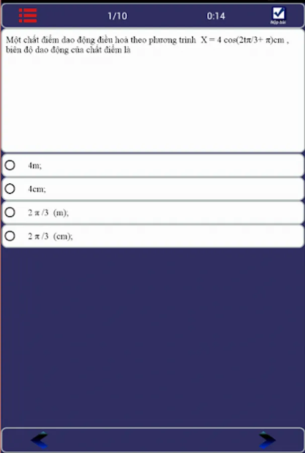 "Quizzes and review knowledge of physics" is a free app - equipped to help you prepare for the exam refresher important at the end of grade 12 Physics, applications can help them proactive in learning - knowledge review, you can check the results and assess their practical knowledge before the exam.