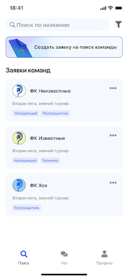 HSE Football - An Android mobile application designed for users who want to take part in the HSE Football League. The service simplifies the process of forming football teams for captains and the process of finding teams for players.