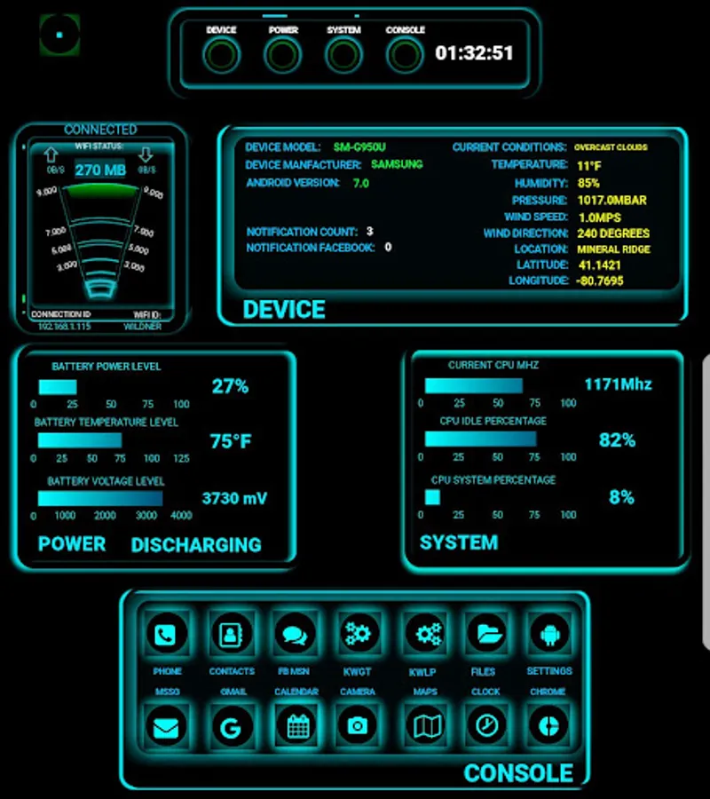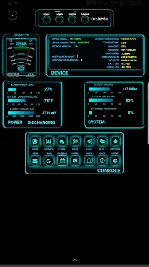 DEVICE INFO - Device model info, Environment/Weather stats, Notifications
