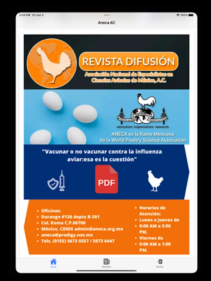 National Association of Specialists in Poultry Sciences of Mexico, AC, better known as ANECA, AC, with address at Calle Durango 136 301-B, Colonia Roma, Mexico City, D.F., Municipality or Delegation Cuahutemoc, C.P. 06700, in the entity of Mexico, CDMX, country Mexico, and internet portal https://www.aneca.org.mx
