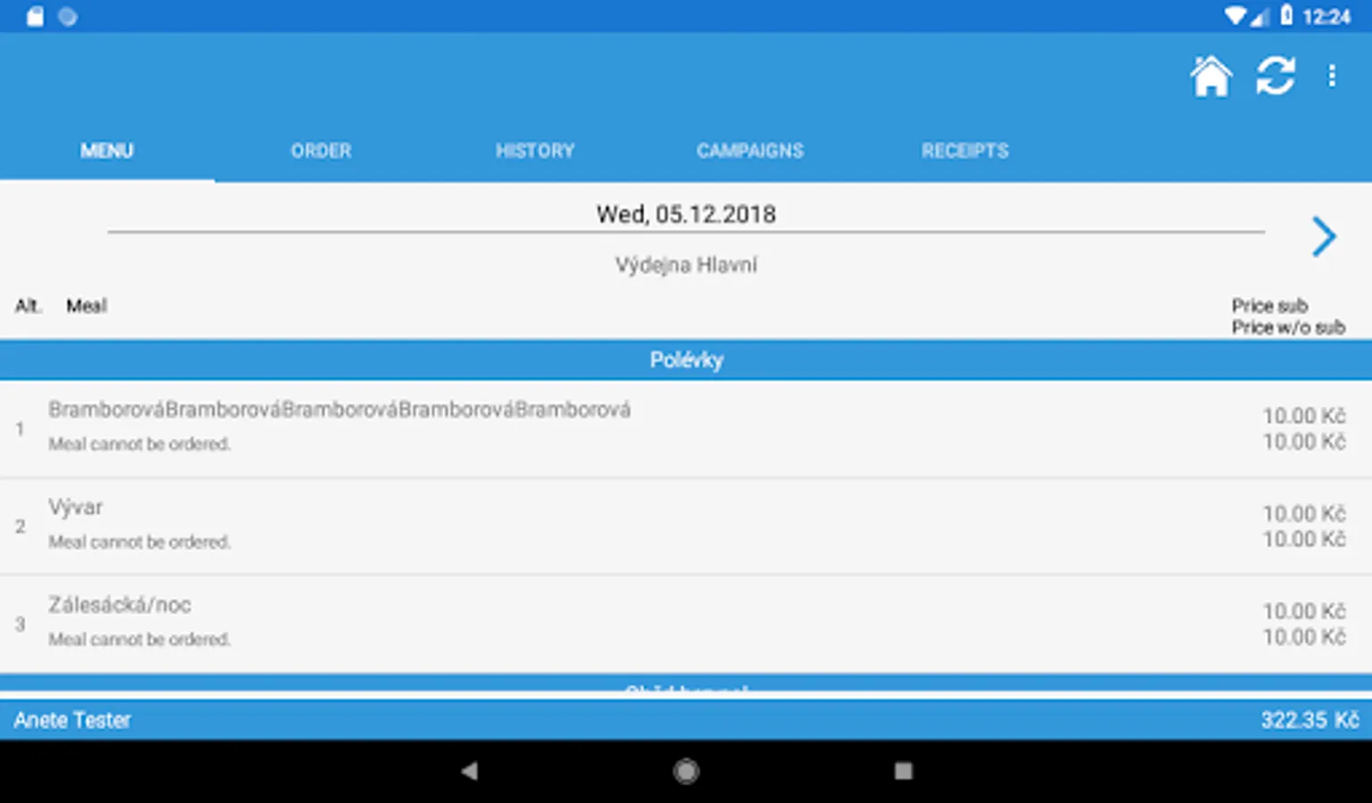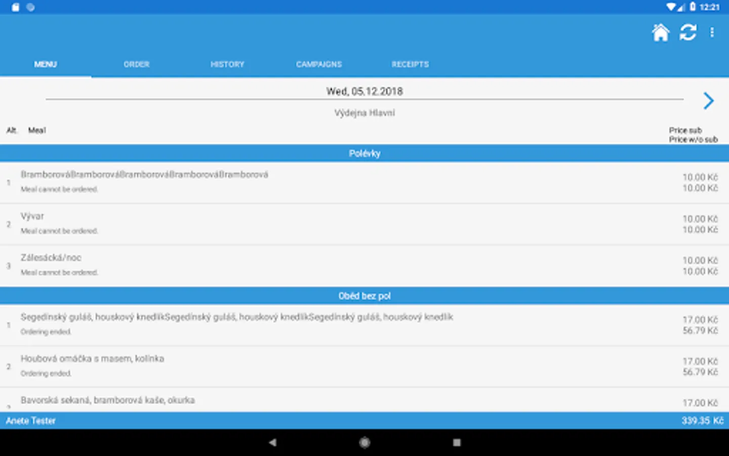 Application for ordering meals in restaurants from ANETE spol. s.r.o. and finally the WebKredit.