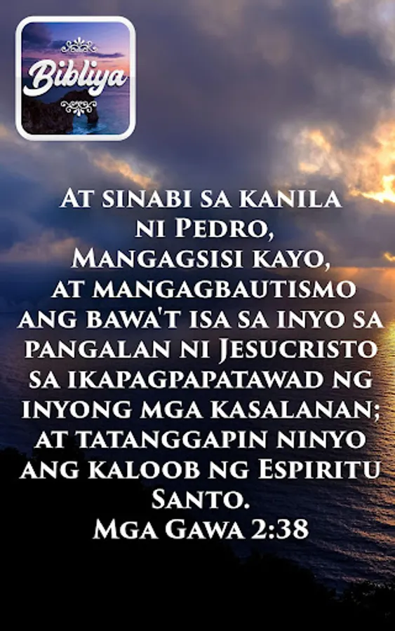- Enjoy this new Bible app that offers an audio version of the Bible in the Tagalog Filipino language. If you cannot read the Scriptures, an audio Bible will be very useful. Listen to the Holy Word of God while you drive, rest, walk or cook. Touch the audio icon to select the chapter or verse you want to hear. A new way of experiencing the Word!