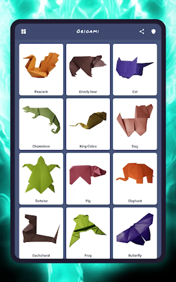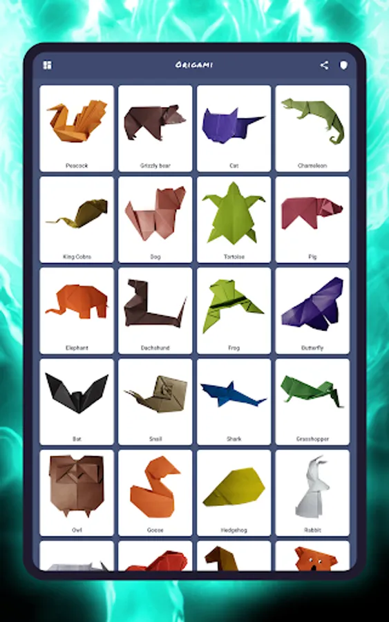 Use the animal patterns from the app to create toys, gifts, and decorations. You can again and again surprise your friends or loved ones with unusual origami. Color origami animal paper models and present them to your friends and family.