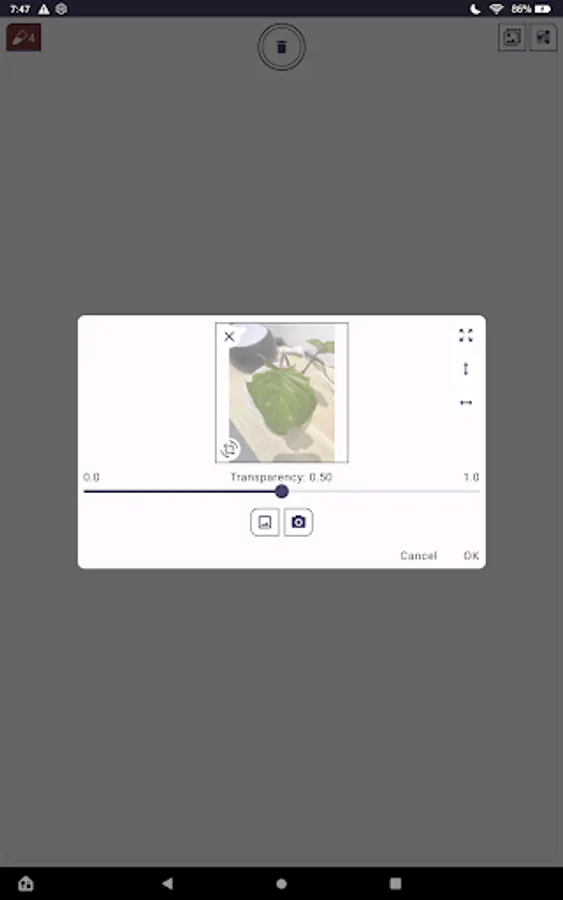 The app also allows you to add backgrounds and adjust the alpha level for more customization options.