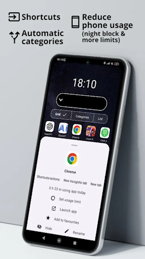 This is an elegant and convenient black theme launcher. Minimalist launcher that helps you reduce device usage.