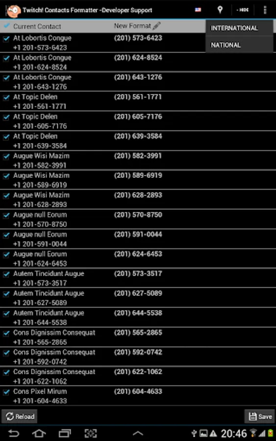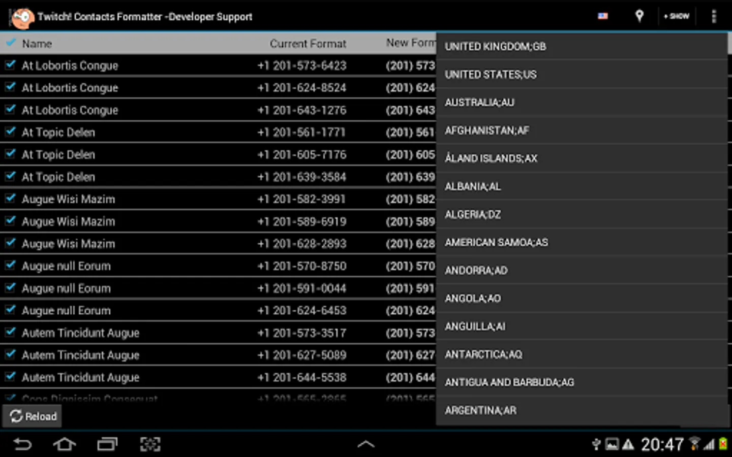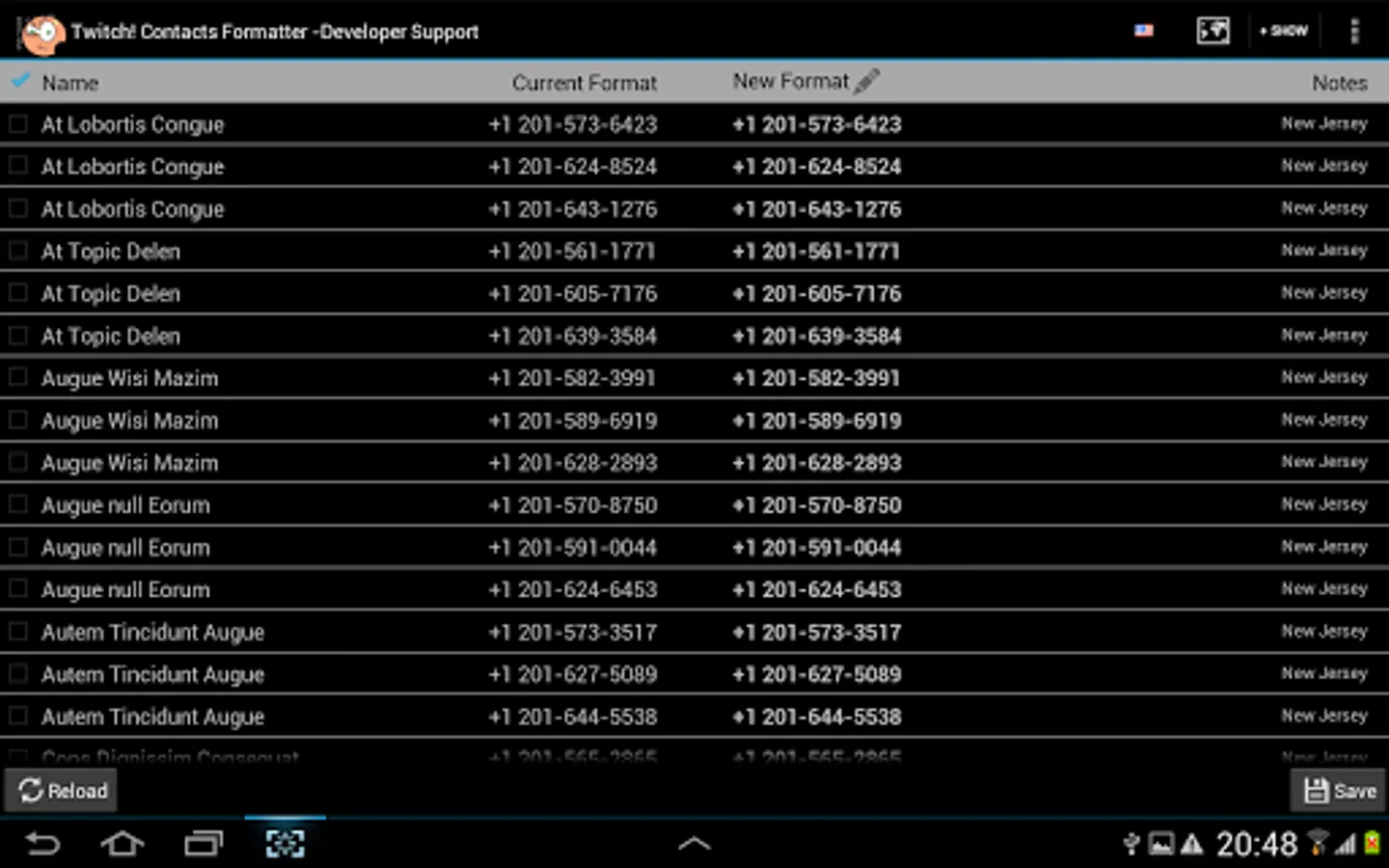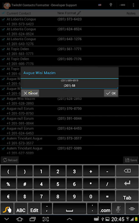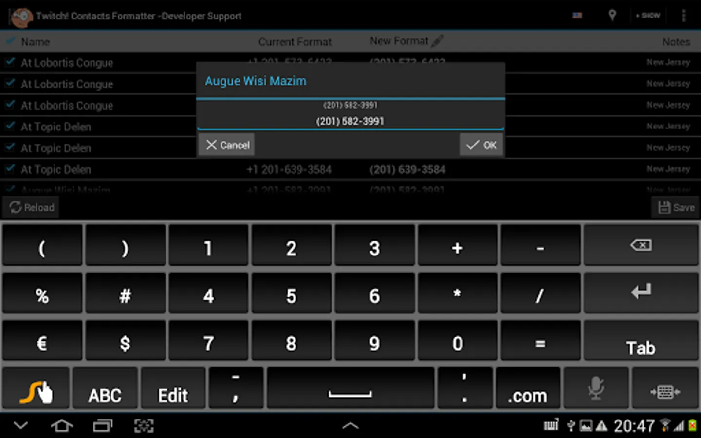 Twitch! Contacts Formatter is a Contact Number Editor and Formatter for the mildly OCD (and international travelers, or people who just like their contact numbers orderly formatted).