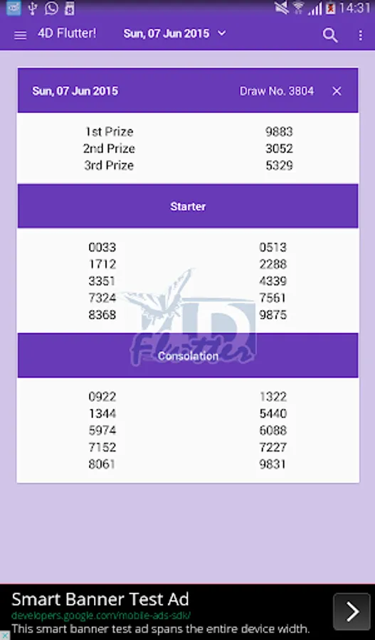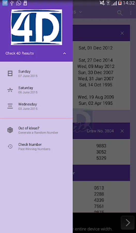 Easily share the latest 4D Results and History with your friends via Whatsapp, Gtalk, SMS, Line and most other popular messaging and email apps.
