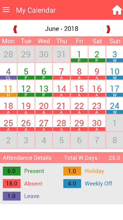 3. My calendar, an easy-to-use interface and user experience to self-check their attendance