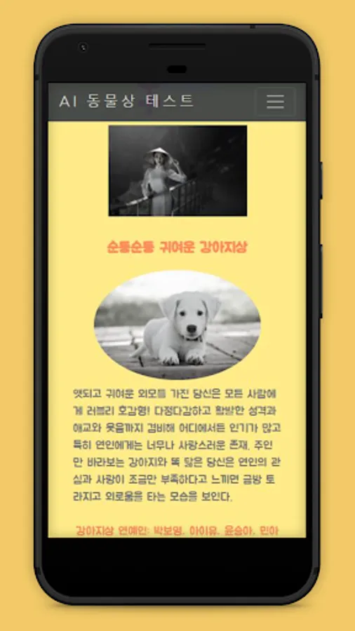 Through learning a large amount of image data, artificial intelligence finds faces that match your photos as animals and celebrities. rabbit statue? fox statue? cat figure?