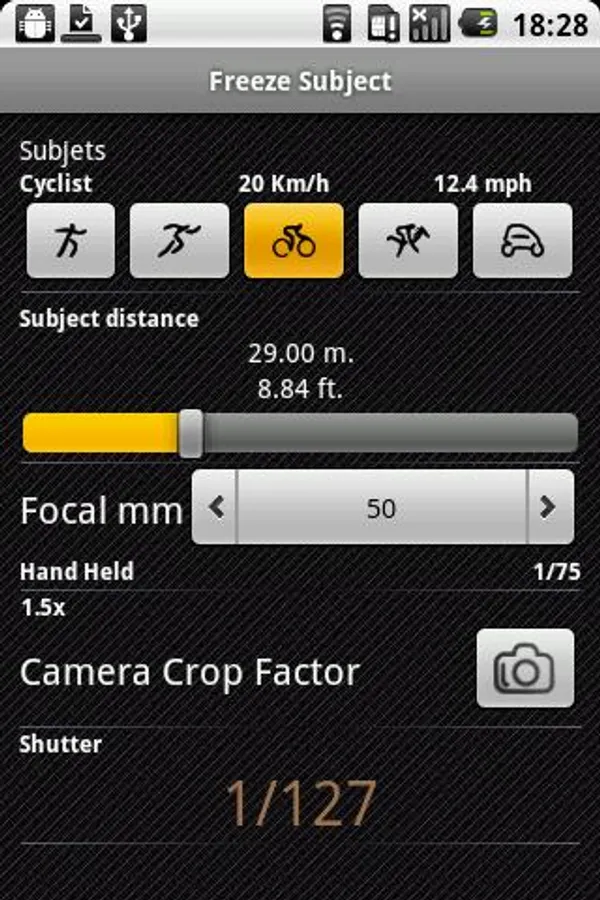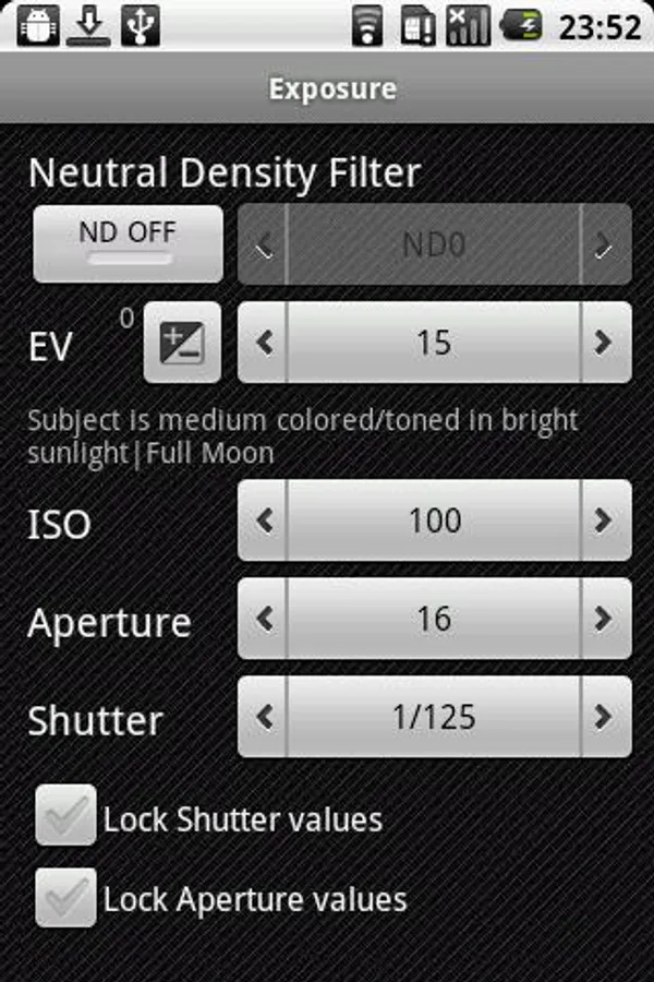 The application allow manual mode, Shutter priority mode and Aperture priority mode.