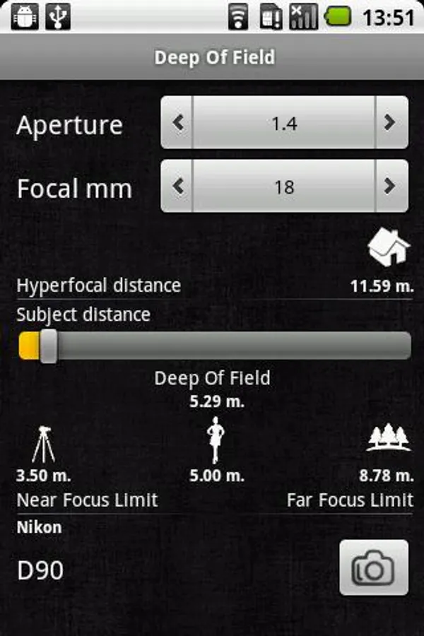 Easy and accurate Deep Of Field Calculator (DOF) and Hyperfocal Distance for your camera. Just specify your camera model, the focus length, f-stop, and subject distance.