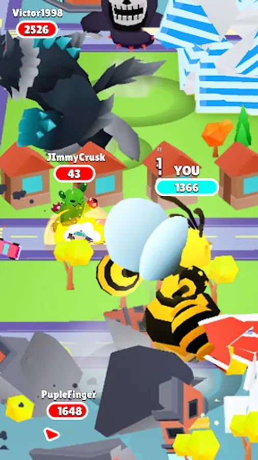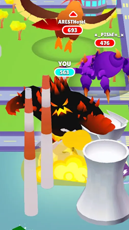 The gameplay of Evo Crazy Beasts 3D is straightforward - choose your monster and cause maximum damage in the time allotted for the round. For each destroyed object, you get experience. When your monster levels up, it evolves, getting bigger, and its appearance changes. Turn the little animal into a huge dragon bigger than skyscrapers! But keep in mind that it won’t be easy at all, you are surrounded by opponents who are eager to throw you off the top of the leaderboard and take all your earned experience. Fight and crush them before they have time to understand anything. Smash the city in the allotted time and rise to the top of evolution!