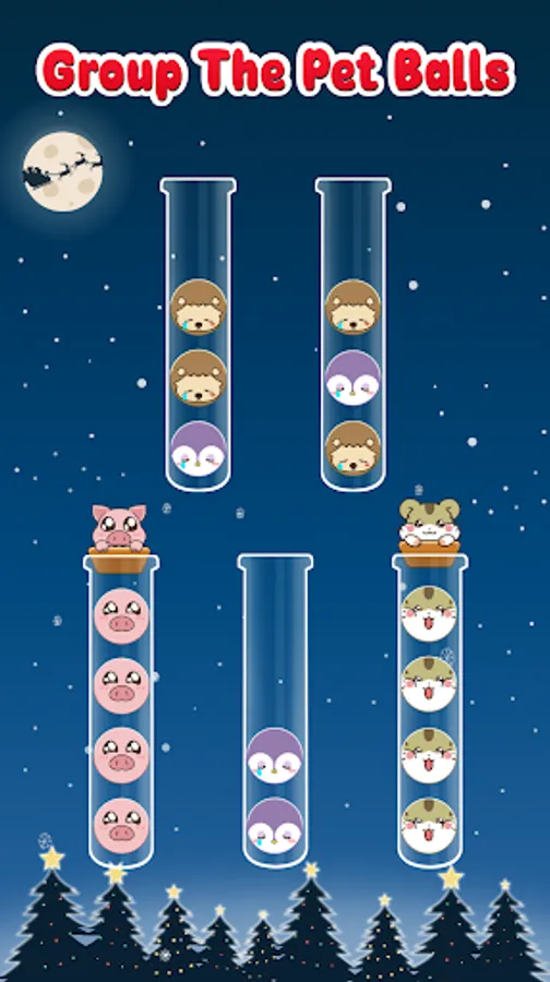 🎁 Smartly sort the cute pets like balls in the tubes until all the pets balls of the same color are set in the same tube. Let's try this entertaining and stimulating game to sharpen your brain!