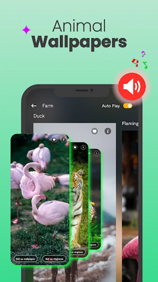 Add a touch of nature to your phone with our Animal Ringtones & wallpapers. Make calls and SMS more fun with bird sounds & animals voice for each contact. Choose from a variety of animal sounds and animal wallpaper and bring the beauty of the wild to your screen.